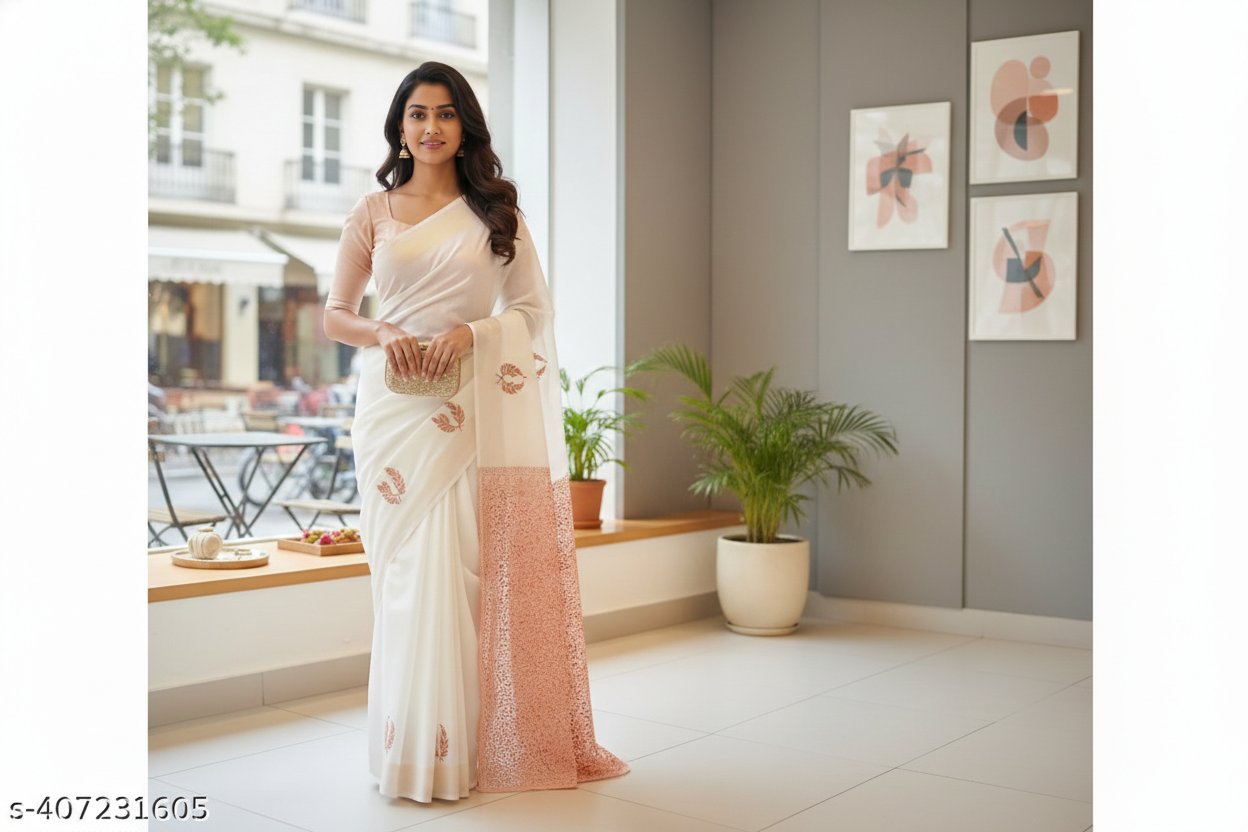 A must-have trending Banarasi saree for women who love timeless style with a soft, graceful finish.